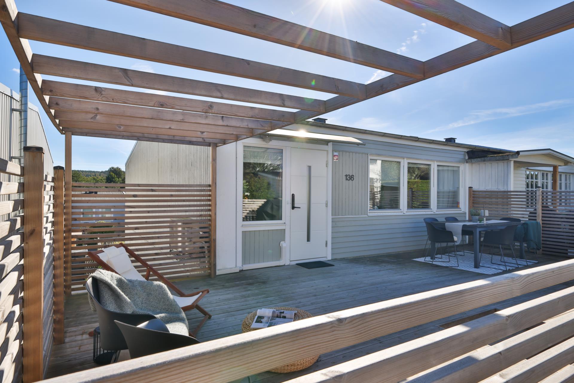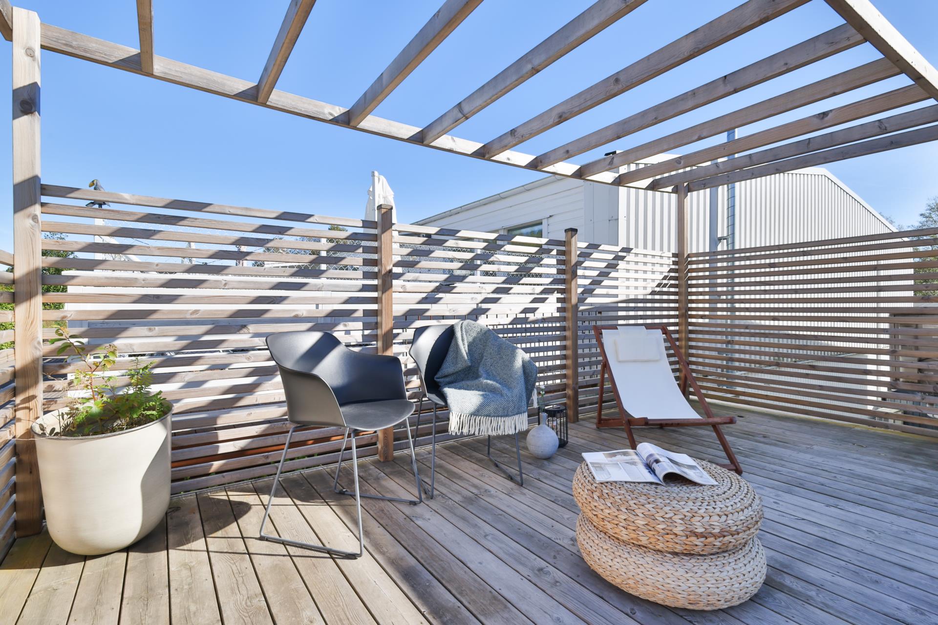 - Altanen på framsidan har pergola och plats för både middag och avkoppling