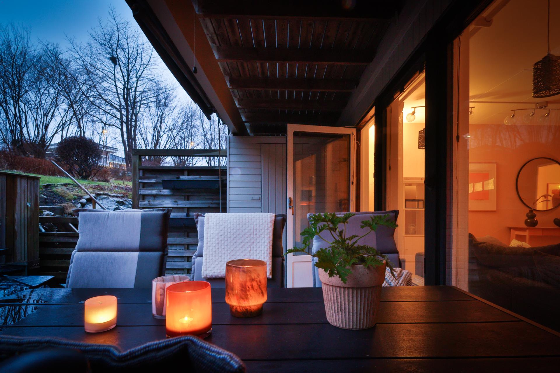 - Två uteplatser i olika väderstreck