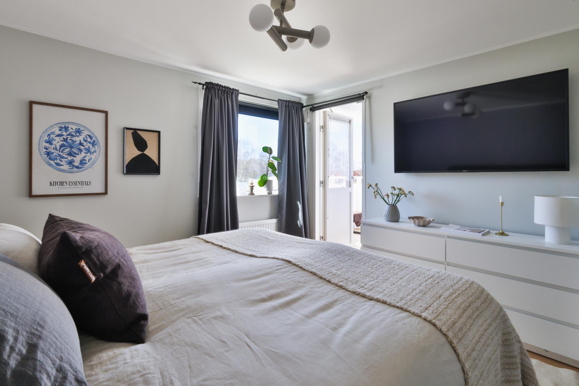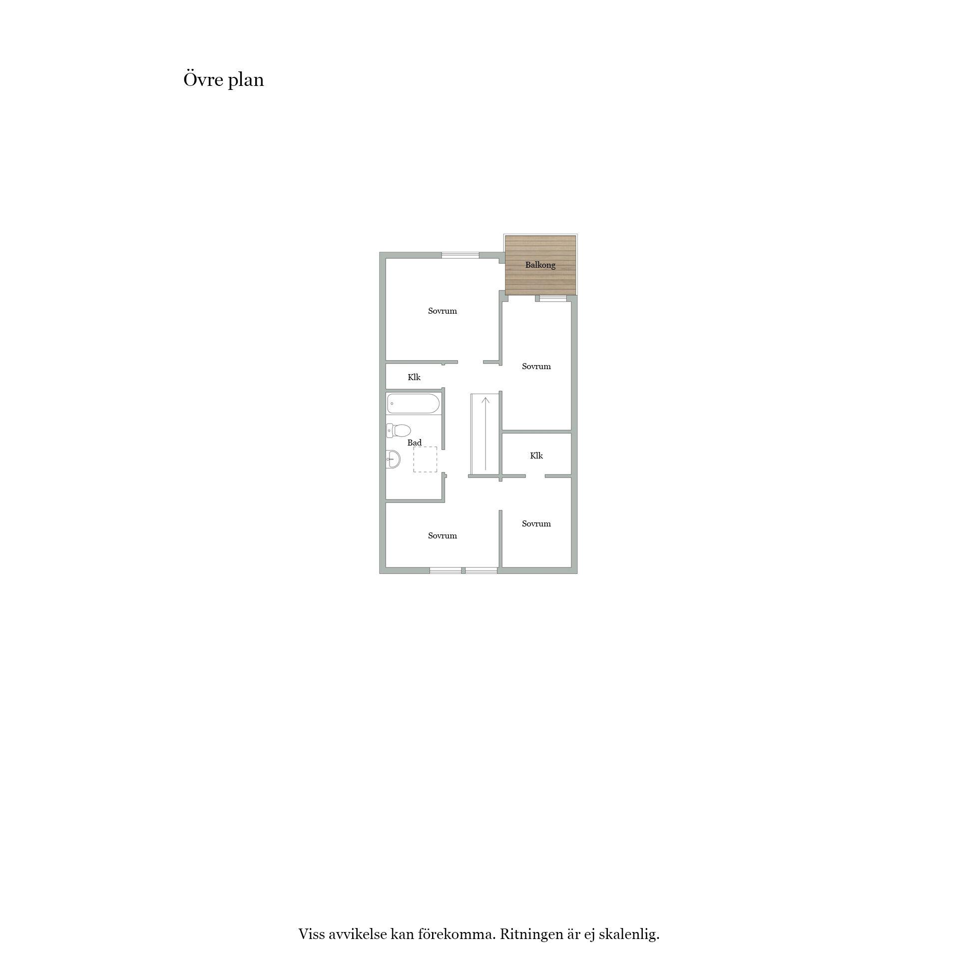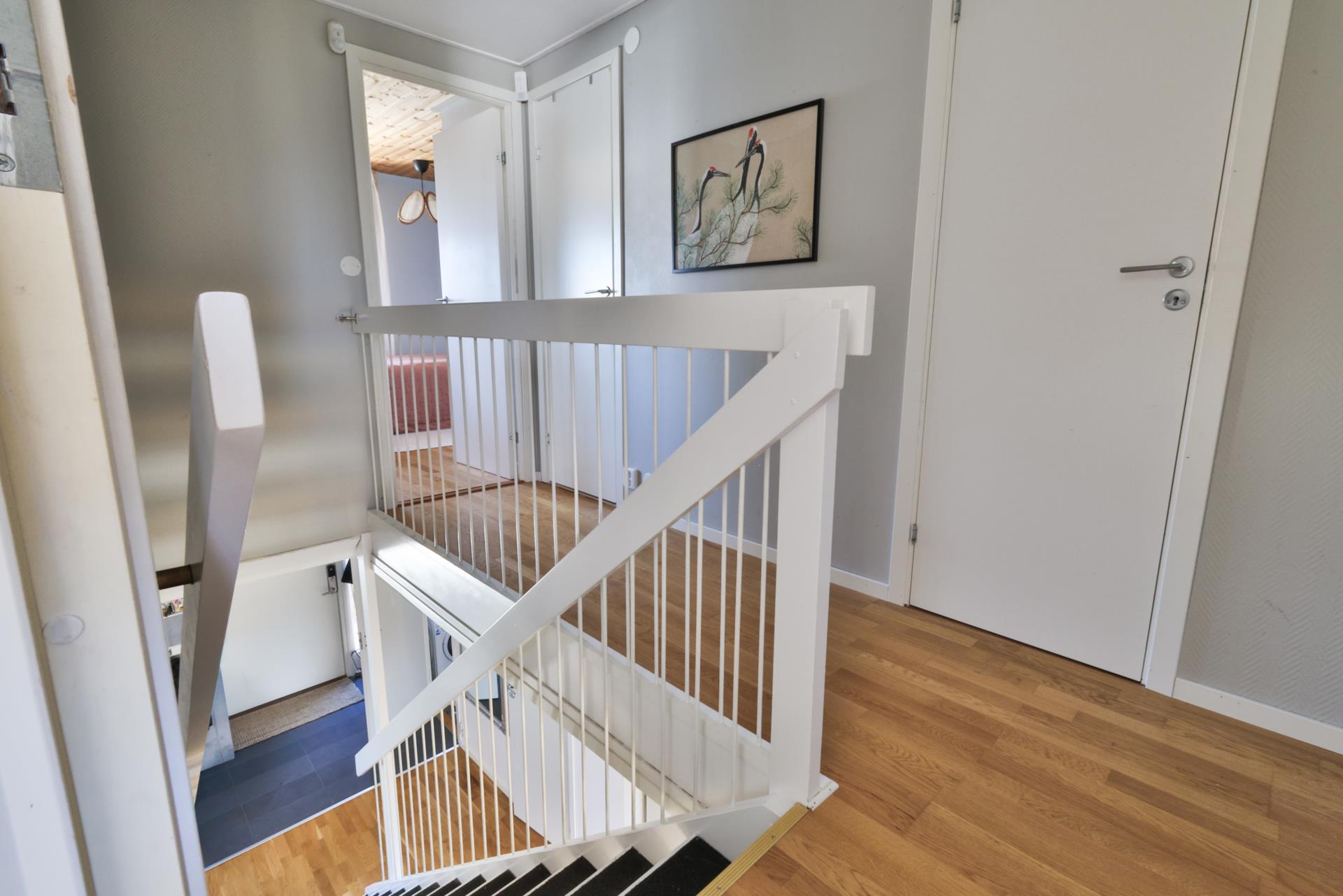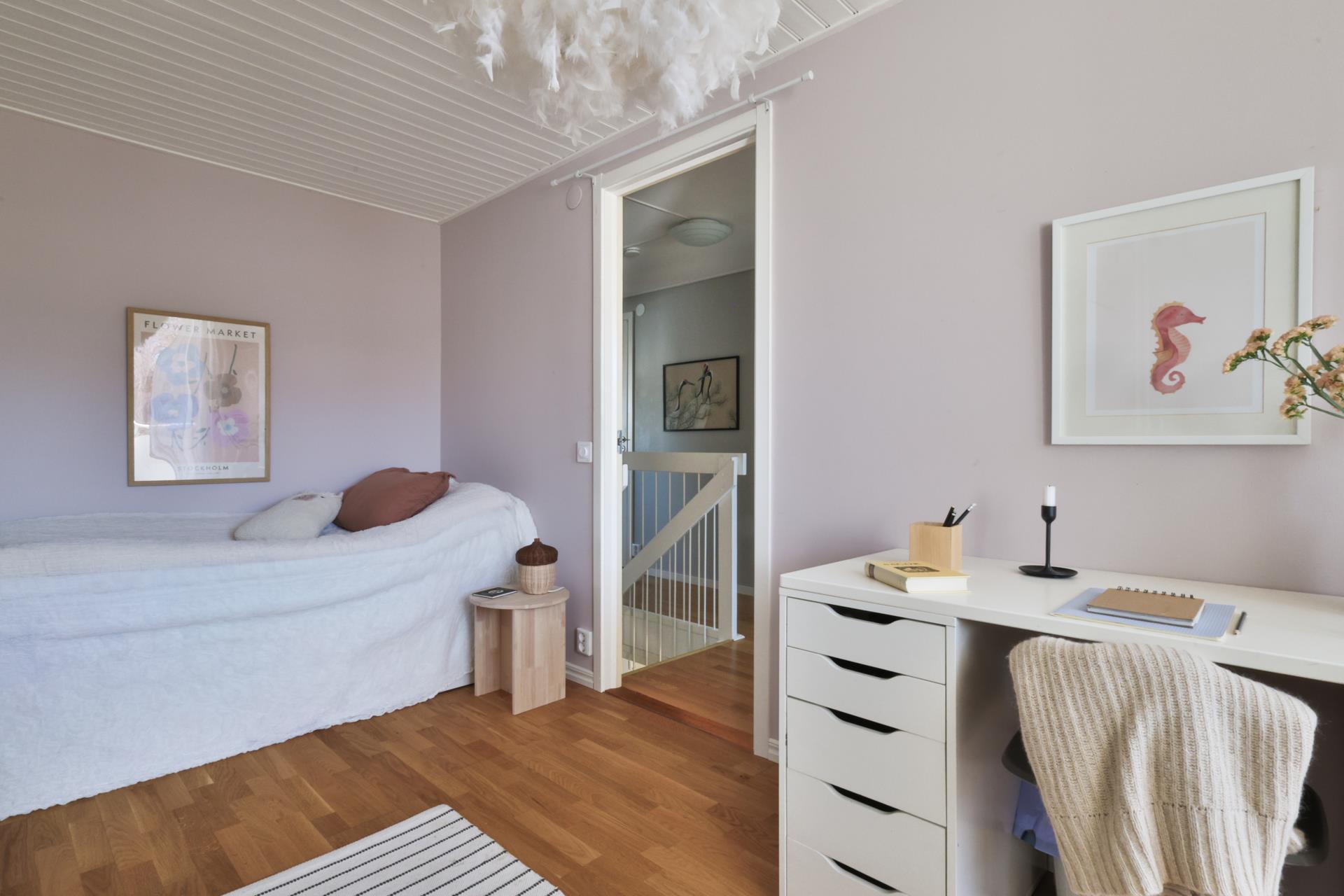 - Fyra sovrum på övre plan i en praktisk planlösning