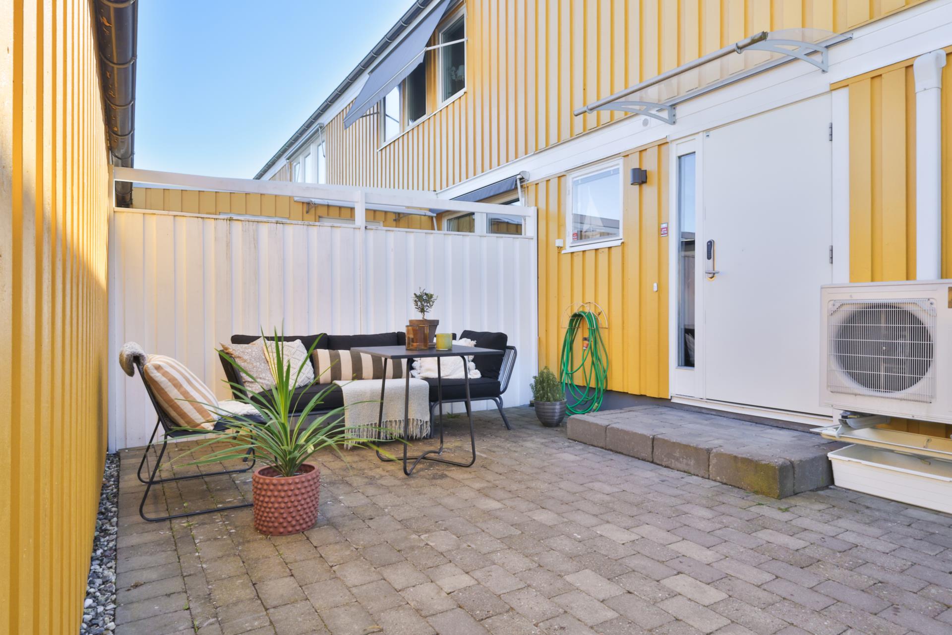 - Uteplats på framsidan med morgonsol och praktiskt förråd intill